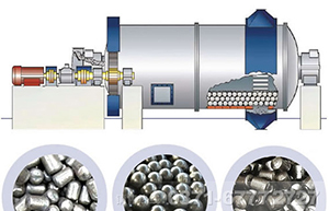 球磨機(jī)工作時(shí)主要是利用研磨體在磨倉內(nèi)隨著筒體的回轉(zhuǎn)而對(duì)物料進(jìn)行撞擊,致使物料被研磨成粉。球磨機(jī)的筒體為長(zhǎng)形圓筒,筒內(nèi)裝有研磨體,研磨體一般為鋼制圓球,并按不同直徑和一定比例裝入筒中,研磨體也可用鋼段。根據(jù)研磨物料的粒度加以選擇,物料由球磨機(jī)進(jìn)料端空心軸裝入筒體內(nèi),當(dāng)球磨機(jī)筒體轉(zhuǎn)動(dòng)時(shí)候,研磨體由于慣性和離心力作用,摩擦力的作用,使它附在筒體襯板上被筒體帶走,當(dāng)被帶到一定的高度時(shí)候,由于其本身的重力作用而被拋落,下落的研磨體像拋射體一樣將筒體內(nèi)的物料給擊碎。